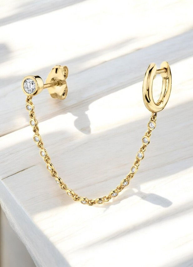 Enhance your style with the Helix Chain Piercing Copper Zircon Drop Earrings. Featuring a cascading chain design that drapes gracefully from the helix, these earrings boast sparkling copper zircon accents that catch the light beautifully. Perfect for adding a touch of contemporary edge to any look, they seamlessly blend bold style with refined sophistication.